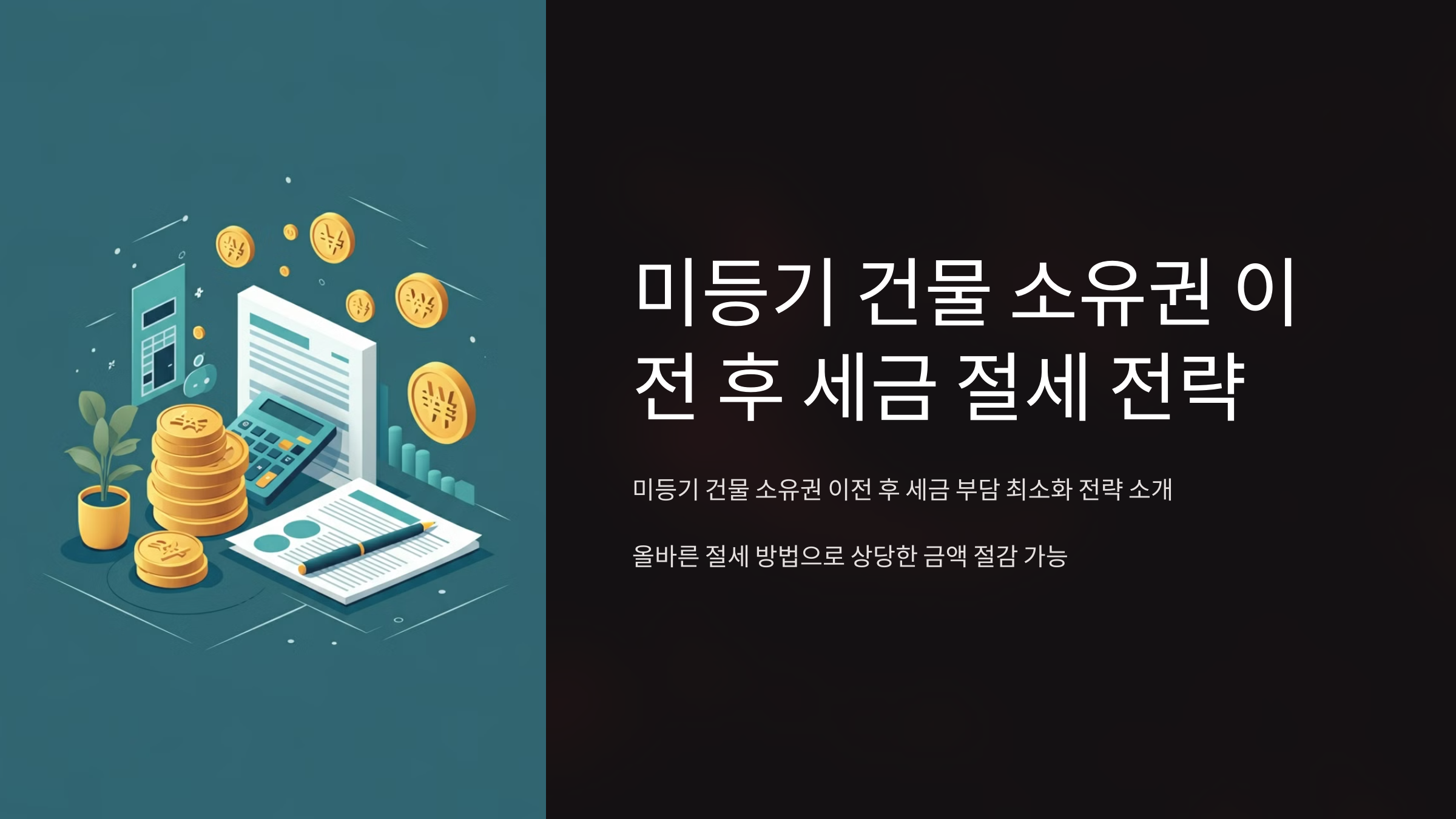미등기 건물 소유권 이전 후 세금 절세는 여러 가지 방법을 통해 가능합니다.